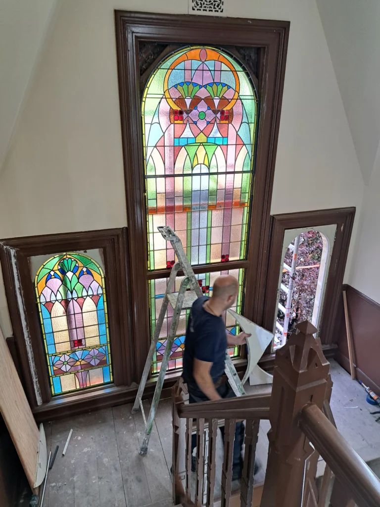 Det är det. Vi delar upp restaureringsarbetet i faser – invändigt och utvändigt – och anlitar hantverkare med erfarenhet av historiska byggnadsmaterial och tekniker. Förberedande forskning är avgörande: arkivstudier berättar för oss om människorna som bodde i huset och tidigare ombyggnationer. Till och med färgprover som upptäcks genom specialistanalyser kan avslöja hur interiörerna såg ut för århundraden sedan.